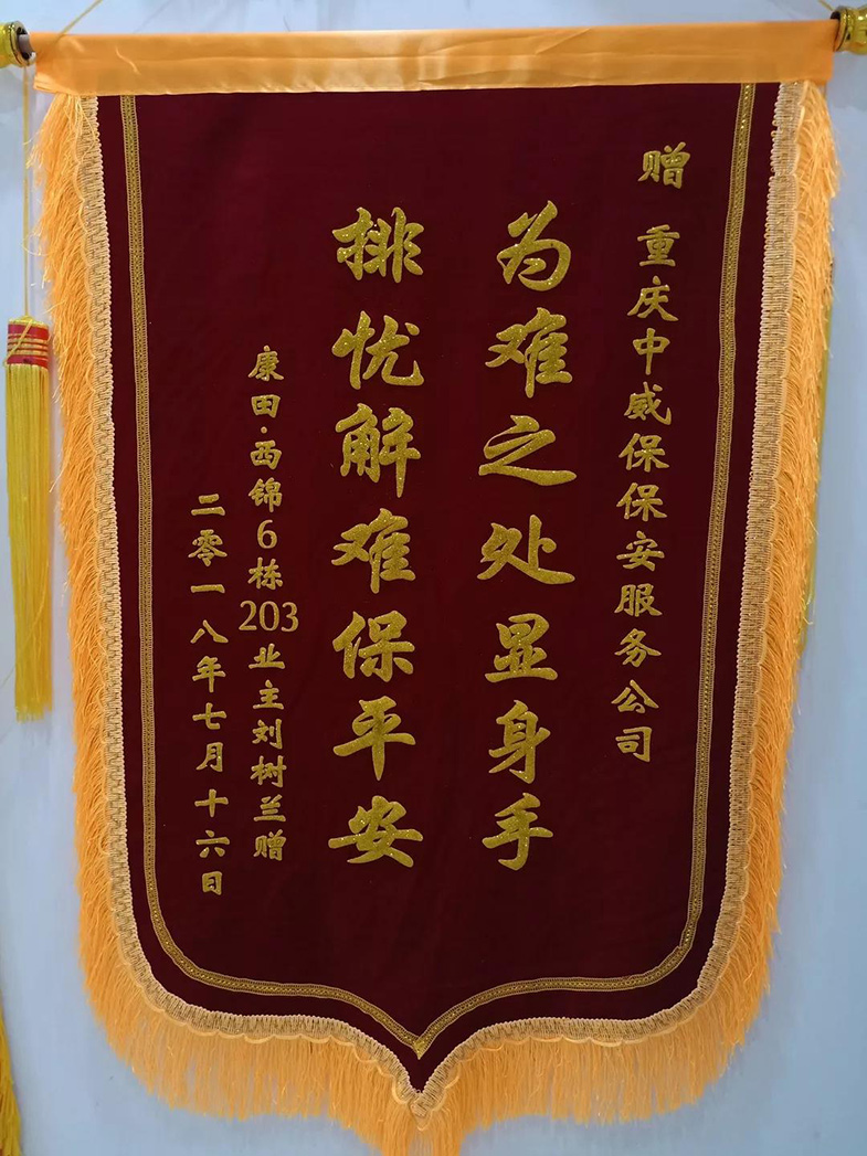 2018年7月16日,我司駐康田西錦巡邏隊員張勇在巡邏時聽到一位老人的求救聲。原來,老人今年87歲了,家里又沒人,自己一人在衛(wèi)生間時意外滑到,無法起立。見此,張勇立即趕到事發(fā)地點,同時通知值班班長陳剛。為了確保老人安全,張勇從落水管爬到4樓的防盜網(wǎng)上進(jìn)入衛(wèi)生間,同時通知120救護(hù)車趕到現(xiàn)場,最終老人得到解救。為了表示感謝,老人特送來錦旗一面。