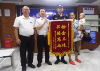 “202,202,R8大廳有位業(yè)主錢包可能是掉在電梯里面了,請過來進(jìn)行查看核實(shí)一下。”2016年9月23日14點(diǎn)15分,陽光一百班長唐浩聽到R8大廳崗隊(duì)員匯報(bào)。收到信息后,他立即趕到現(xiàn)場,在第一時(shí)間內(nèi)穩(wěn)定了業(yè)主著急的心情。同時(shí),他安排監(jiān)控隊(duì)員進(jìn)行查看監(jiān)控。得知業(yè)主的手機(jī)也在錢包里,他靈機(jī)一動,立即撥打手機(jī)核實(shí)是否有人接聽。就在這時(shí),R8三號電梯上傳來了電話鈴聲,確定了手機(jī)及錢包所在地,業(yè)主與唐浩的終于松了一口氣。最后,在工程部人員的幫助下,業(yè)主成功拿回了掉在電梯轎廂上面的錢包及手機(jī)等貴重物品,減少業(yè)主損失現(xiàn)金兩千多元,手機(jī)一部及各種銀行卡。業(yè)主在拿到丟失的物品時(shí),對中威戰(zhàn)士萬分感謝,以一面印有“拾金不昧品德高尚”的錦旗送到了唐浩手中,表示由衷的謝意。