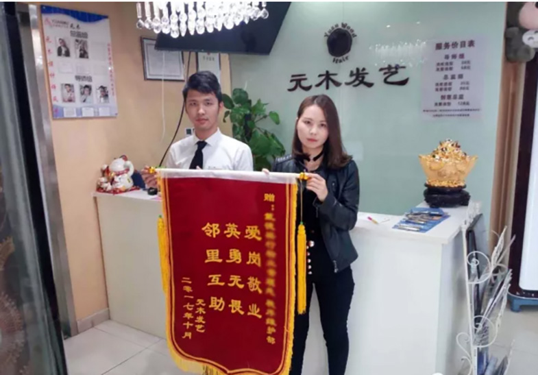 2017年10月13日,融恒廣場內(nèi)一家理發(fā)店因店員用電處置不當,導致店內(nèi)插線板短路燒壞。由于店內(nèi)易燃物品較多,火源迅速燃燒并產(chǎn)生大量濃煙。與此同時,正在總控室值班的中威戰(zhàn)士也接到報警通知,隊長甄洪明立即帶領劉忠穩(wěn)、張鵬舉火速前往理發(fā)店進行救火。